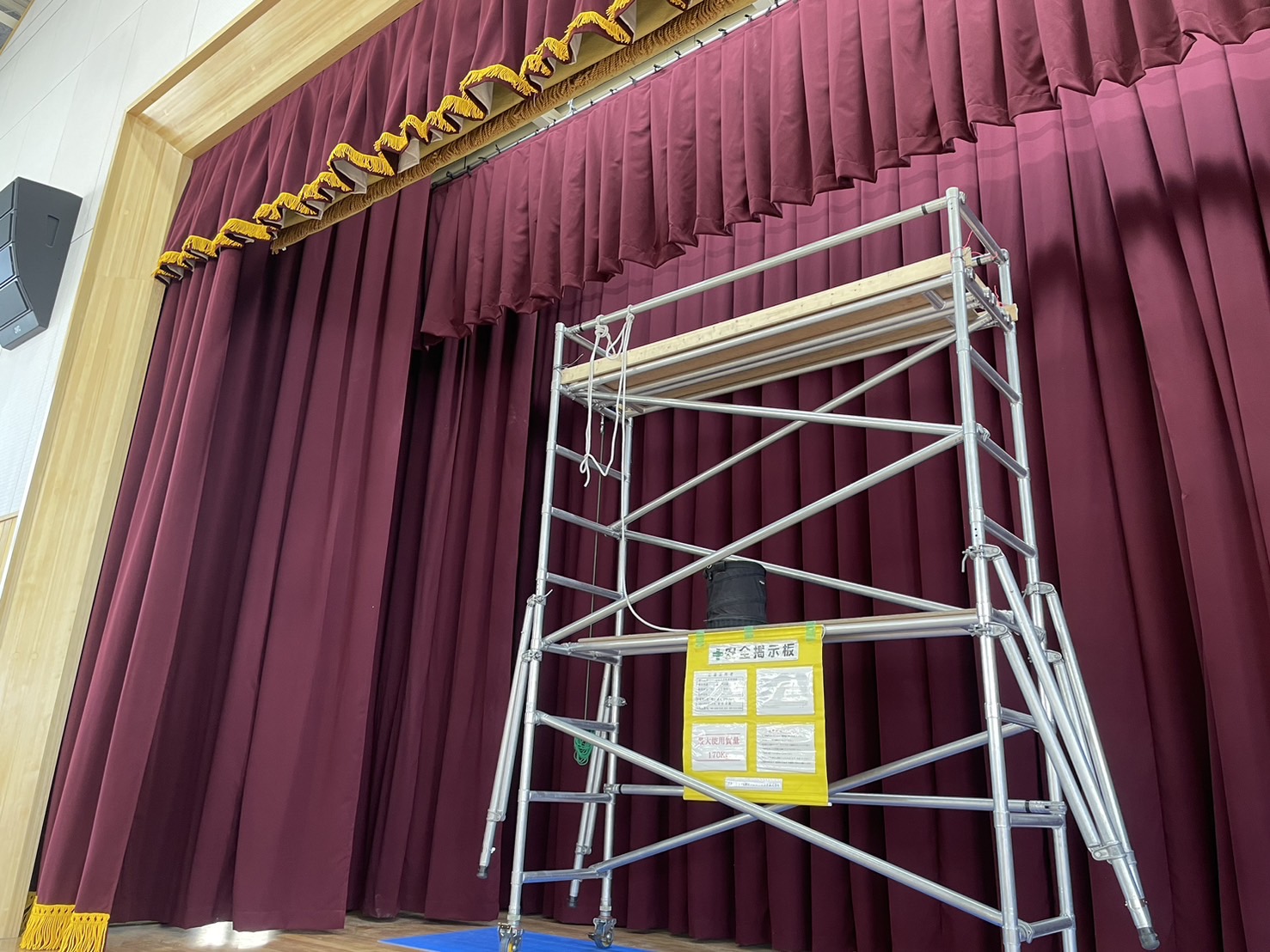 暗幕やスクリーンの取り付けは、足場が不可欠です。