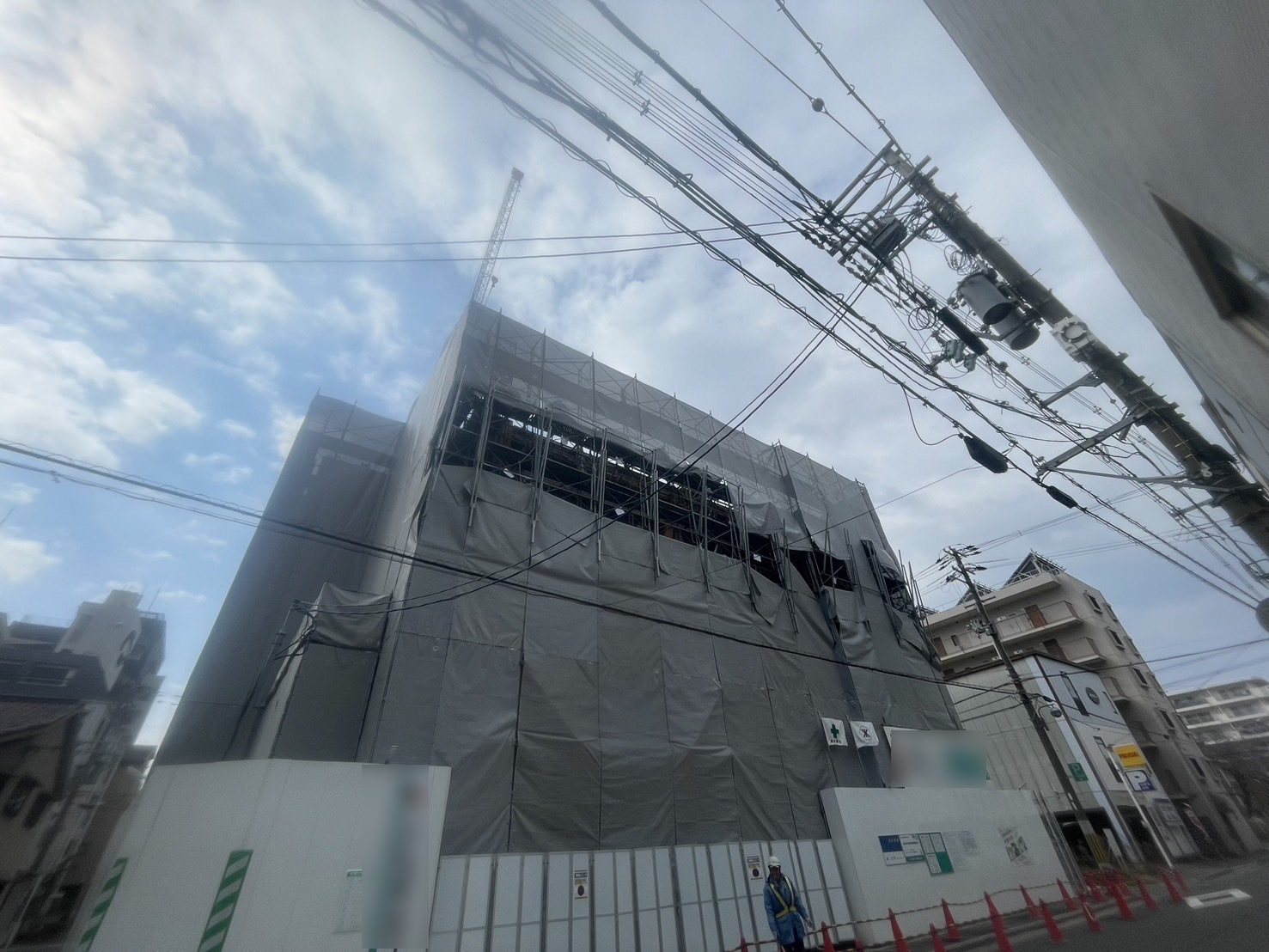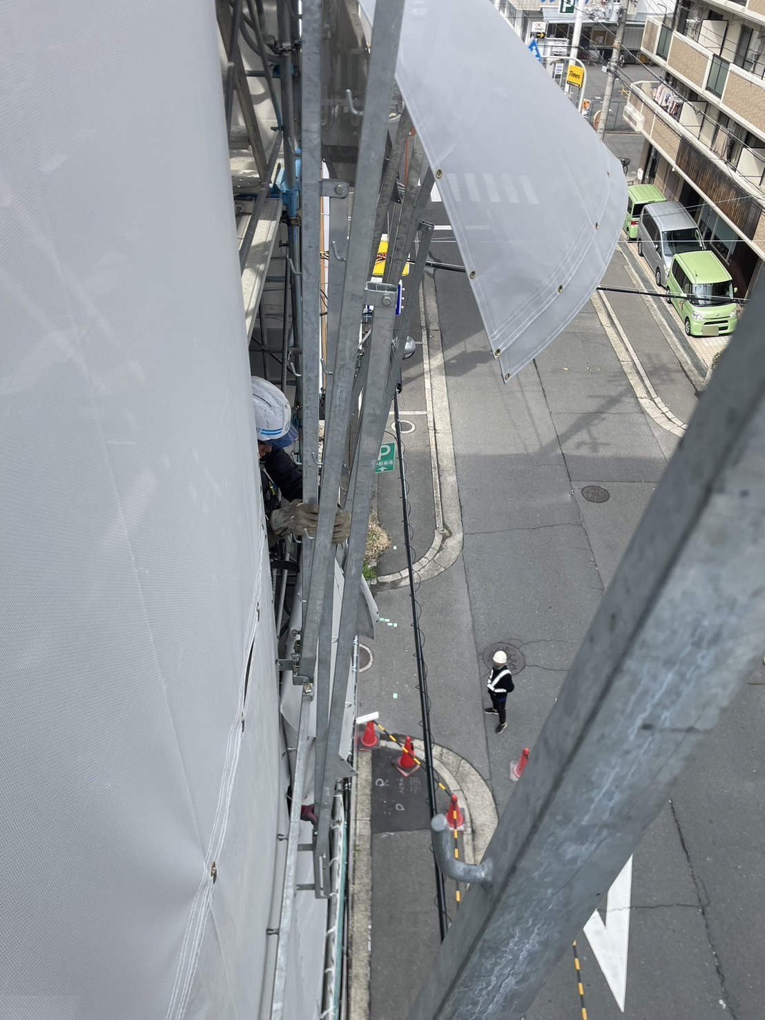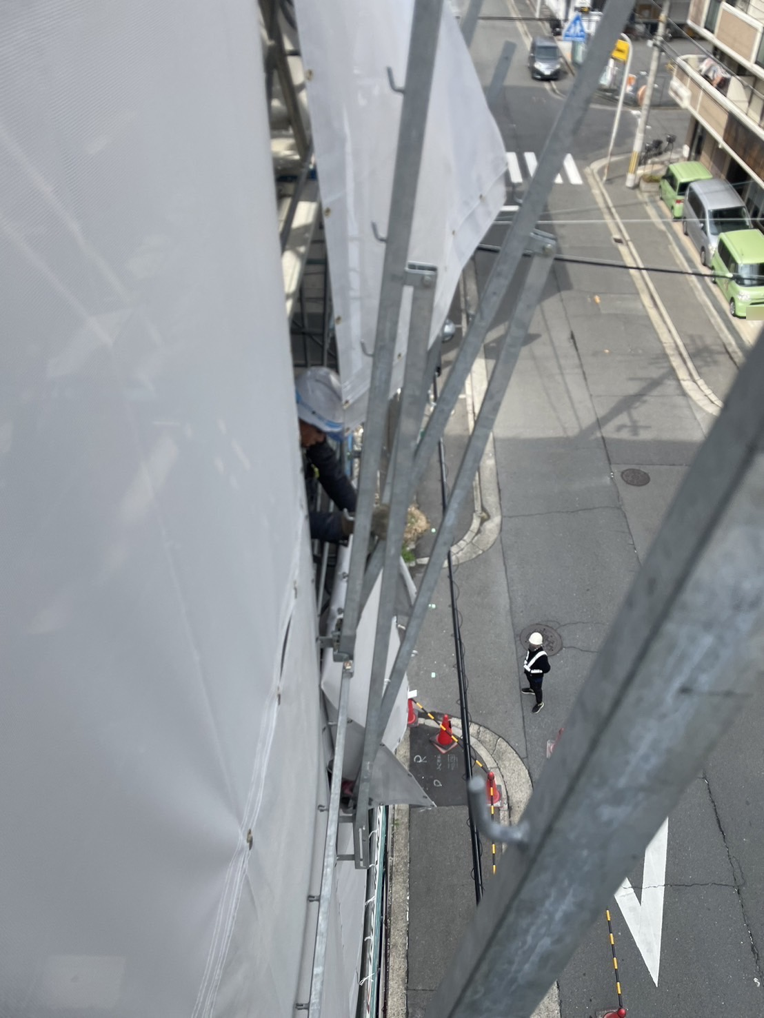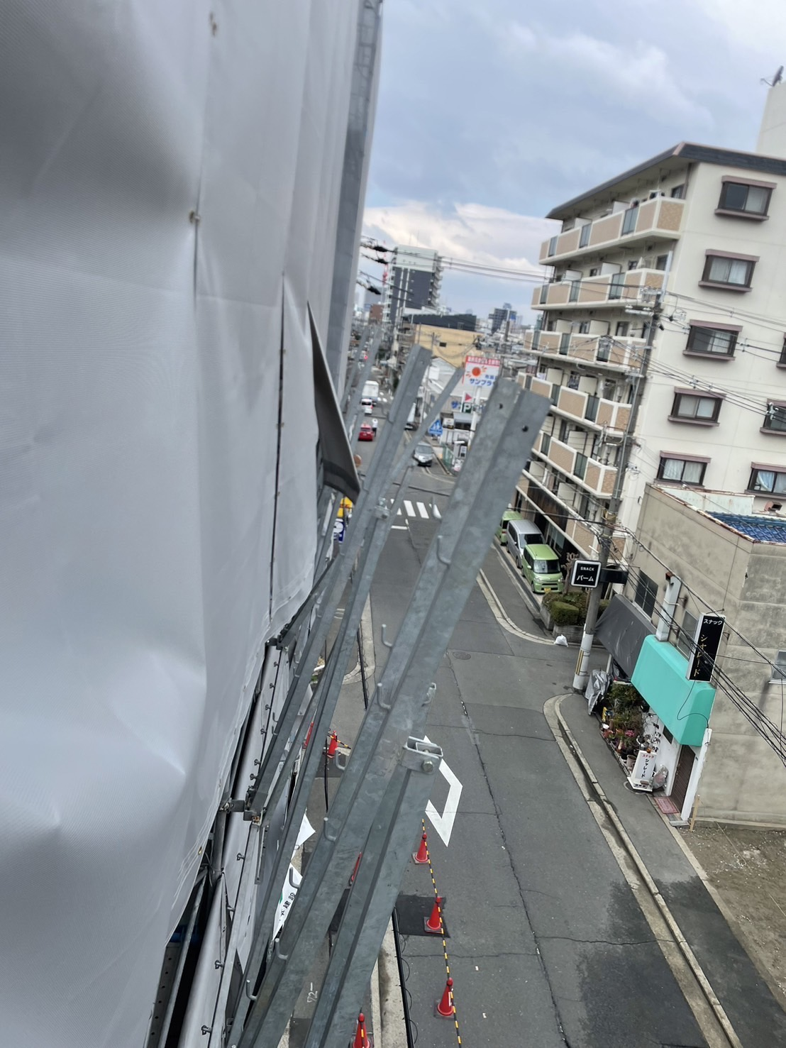 足代新町の足場工事において、朝顔の取り付けを行ないました。